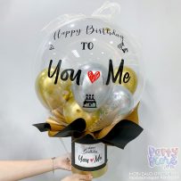 Hộp hoa bong bóng sinh nhật, tone hồng đen