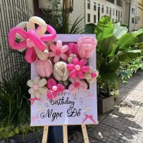 Bảng hoa bong bóng sinh nhật, chủ đề Bé Thỏ và Vườn Hoa, tone hồng pastel – Anh Thảo
